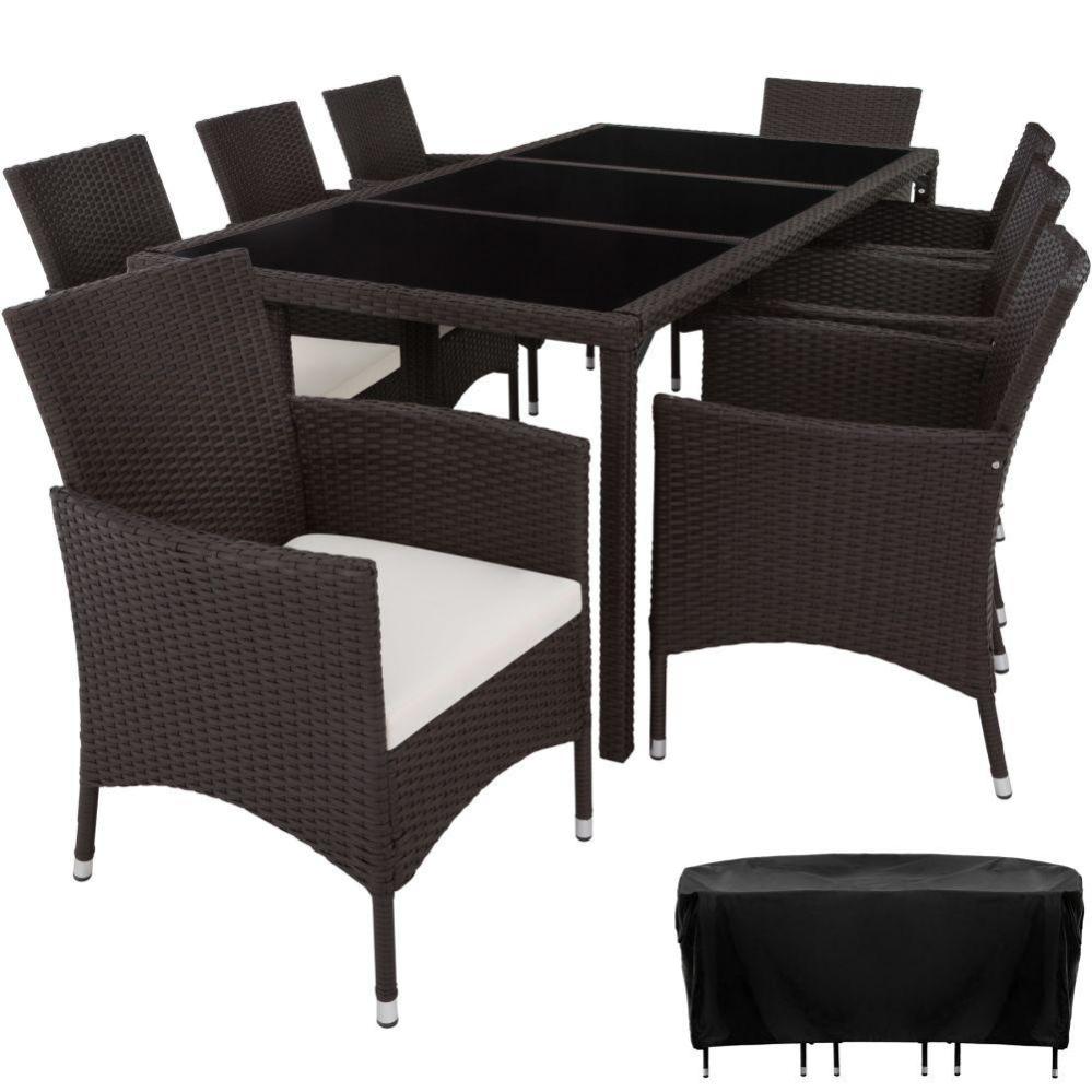 Salon De Jardin Rotin Resine Tresse Synthetique 6 Places Avec 2 Sets De Housses Marron Fonce 2108112 Leroy Merlin